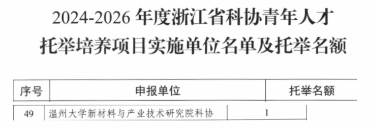 新材料与产业技术研究院成功入选为浙江科协青年人才托举项目实施单位,标志着金沙官网