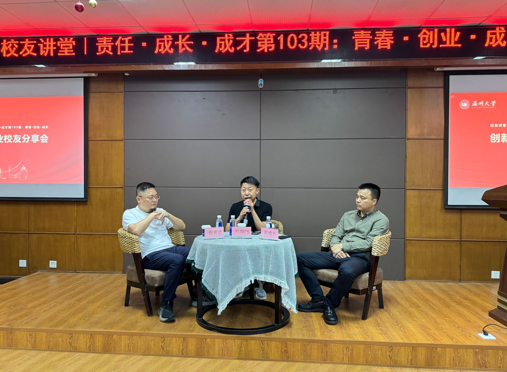 95级工业分析校友,浙江宏舜建设有限公司总经理叶细何、01级应化校友温州瑞通化工有限公司董事长黄通丰、02级材料校友浙江环诺环保科技股份有限公司董事长张里艺三位校友受邀出席本次活动。学院党委书记刘吟、党委副书记周敬业以及金沙官网