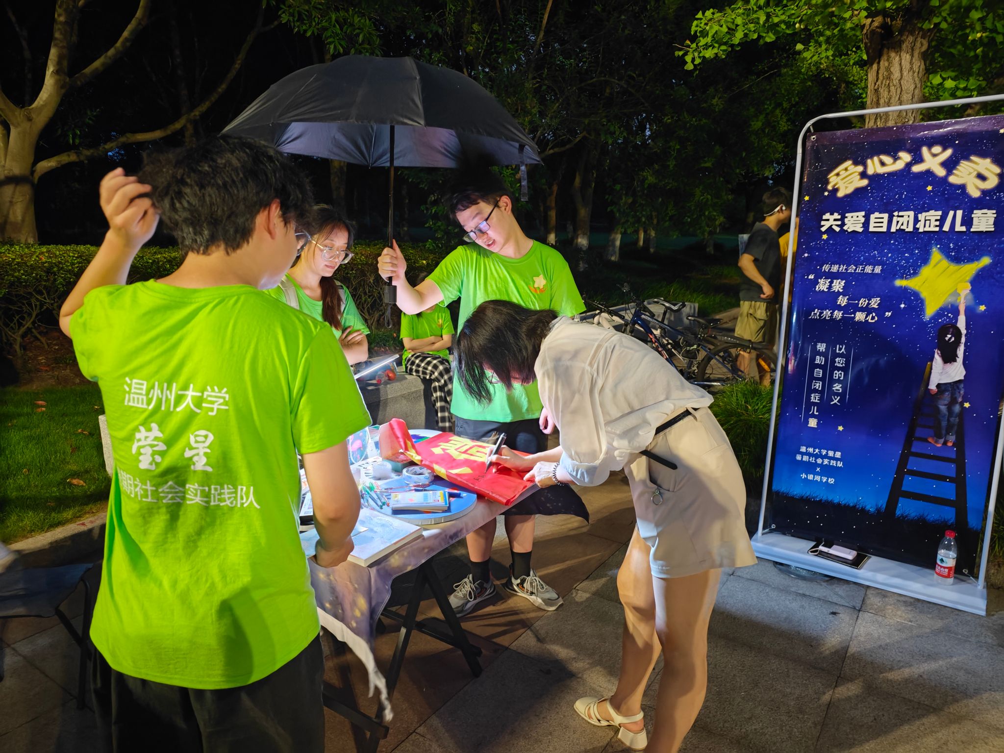 党委领导与团委指导下,以习近平新时代中国特色社会主义思想为指引,进一步贯彻落实党的二十大关于“推动特殊教育普惠发展”的精神,发扬“团结、友爱、互助、进步”的志愿精神,积极投身关爱自闭症儿童系列志愿服务活动。2024年7月,该实践队将继续在温州市小银河学校开展为期2周的“4+N”帮扶活动,力求将学校与社会的人文关怀带给更多自闭症儿童家庭,为自闭症儿童创造“七彩假期”,促进社会“接纳”向外延。