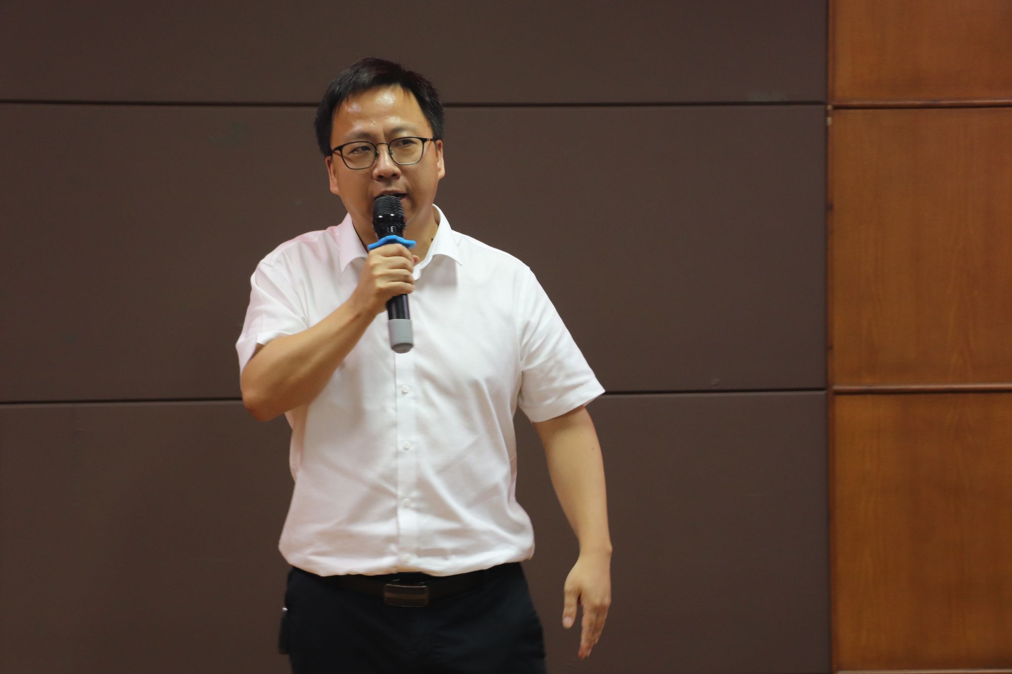 杨植院长发表讲话,他向到场的嘉宾表示最热烈欢迎,并对瑞丰集团的支持表示衷心感谢。他表示本次大赛不仅是一个展示创新成果的平台,更是一个激发思维、交流思想的舞台。希望所有参赛的学生们,勇敢地展示想法,用智慧和热情点燃创新的火花。