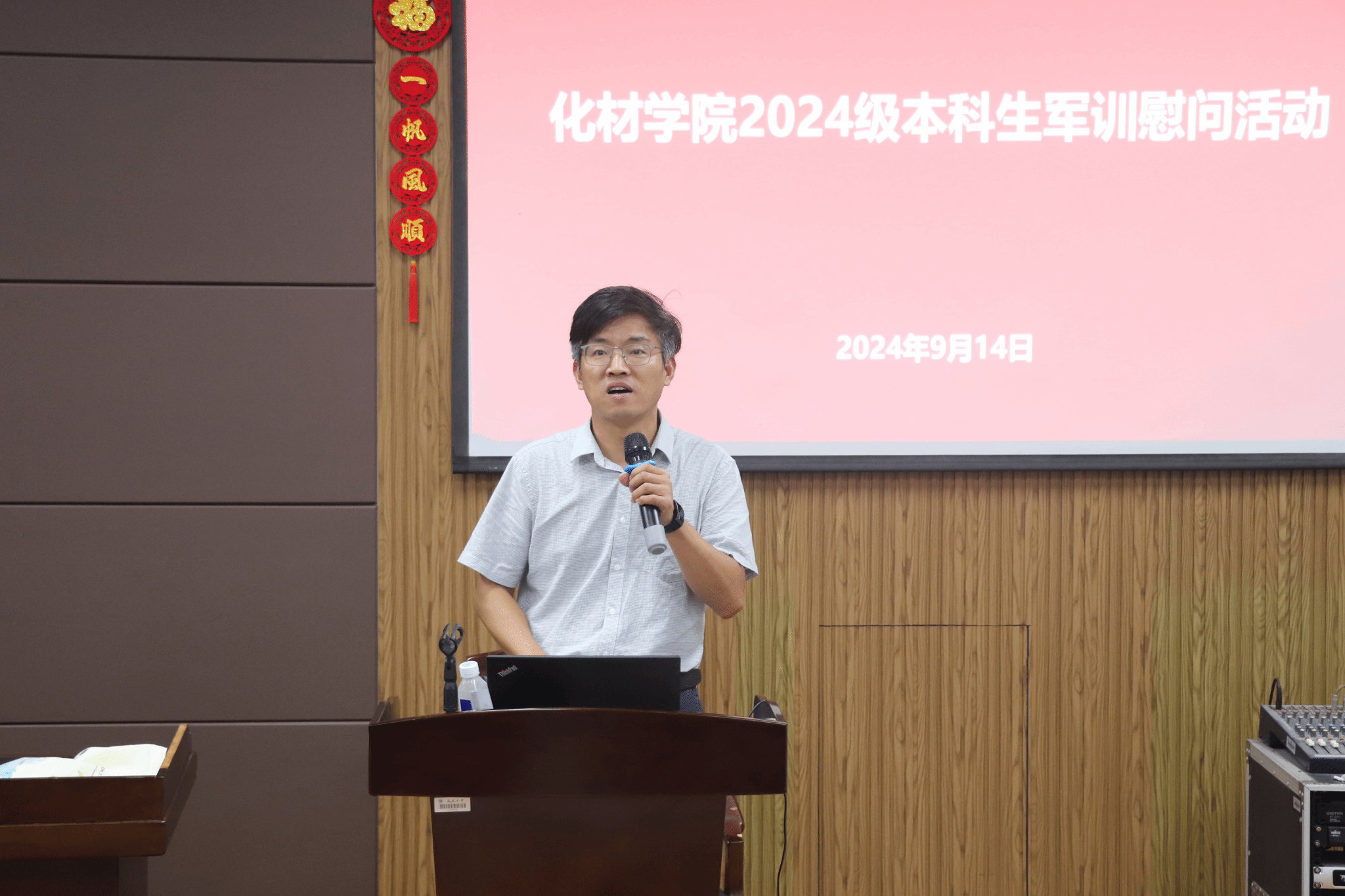 党政班子向全体与会人员送上中秋佳节的问候。他强调,军事技能训练是新生入学后第一节必修课,具有重要意义,既能增强国防意识,又能传承红色基因。他勉励全体参训学生能够借此契机,磨砺意志、增强体质、内化品质,鞭策行动,提升规矩意识、攻坚能力和抗压水平,为今后高强度的研学生活奠定坚实基础。