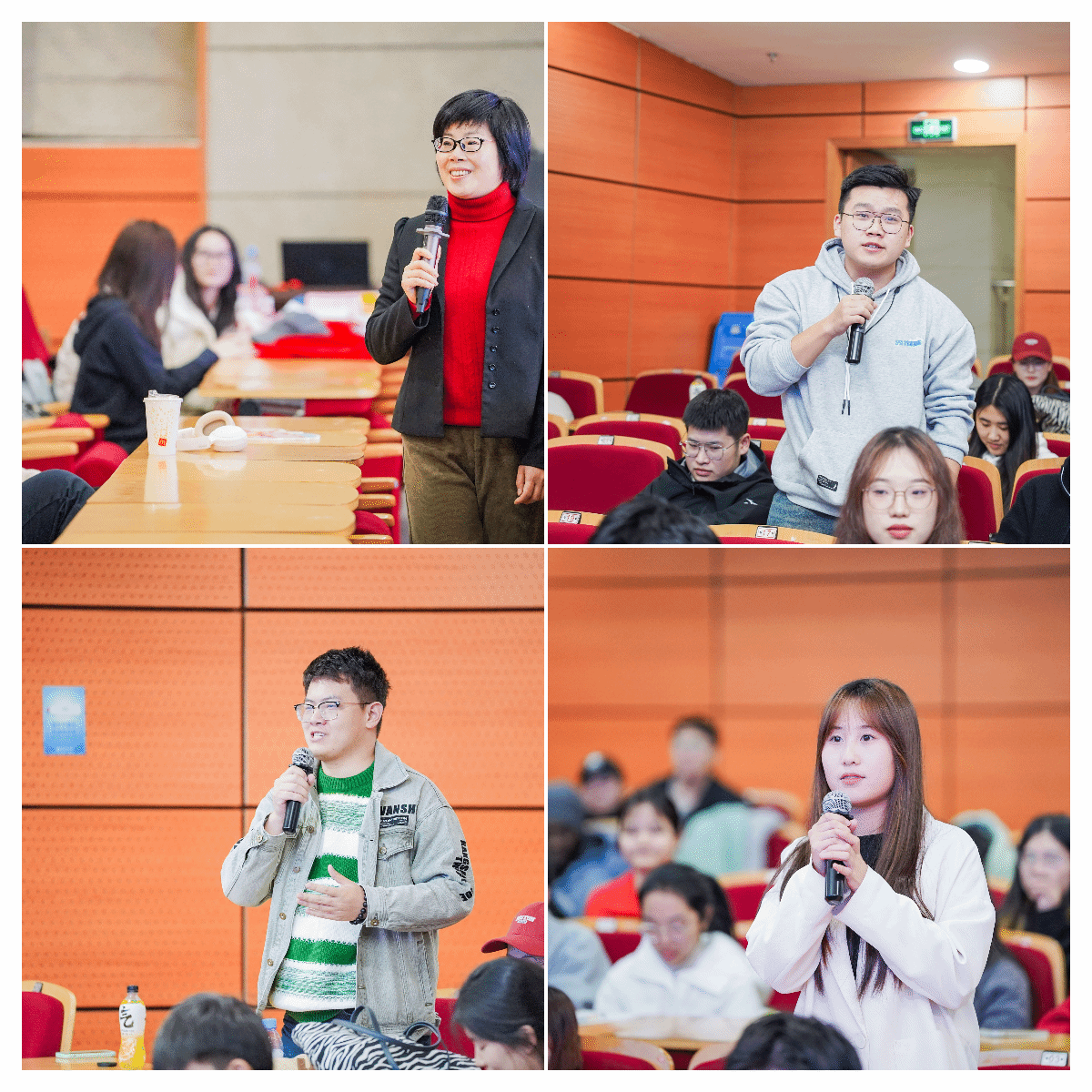 在互动交流环节中,研究生们提出“如何做好科研,发好文章”,“如何平衡科研中的失败”等问题,得到了潘跃晓教授的幽默有趣的回应和启发。她指出,做好科研要有一颗对未知充满好奇与探索欲的心,精准定位研究方向是关键,需要广泛阅读前沿文献,敏锐捕捉学科热点与空白点。潘教授以自身经历娓娓道来,她真切分享道,科研中的失败乃是常态,切不可因一时挫折而气馁,洒下的汗水一定会有收获。