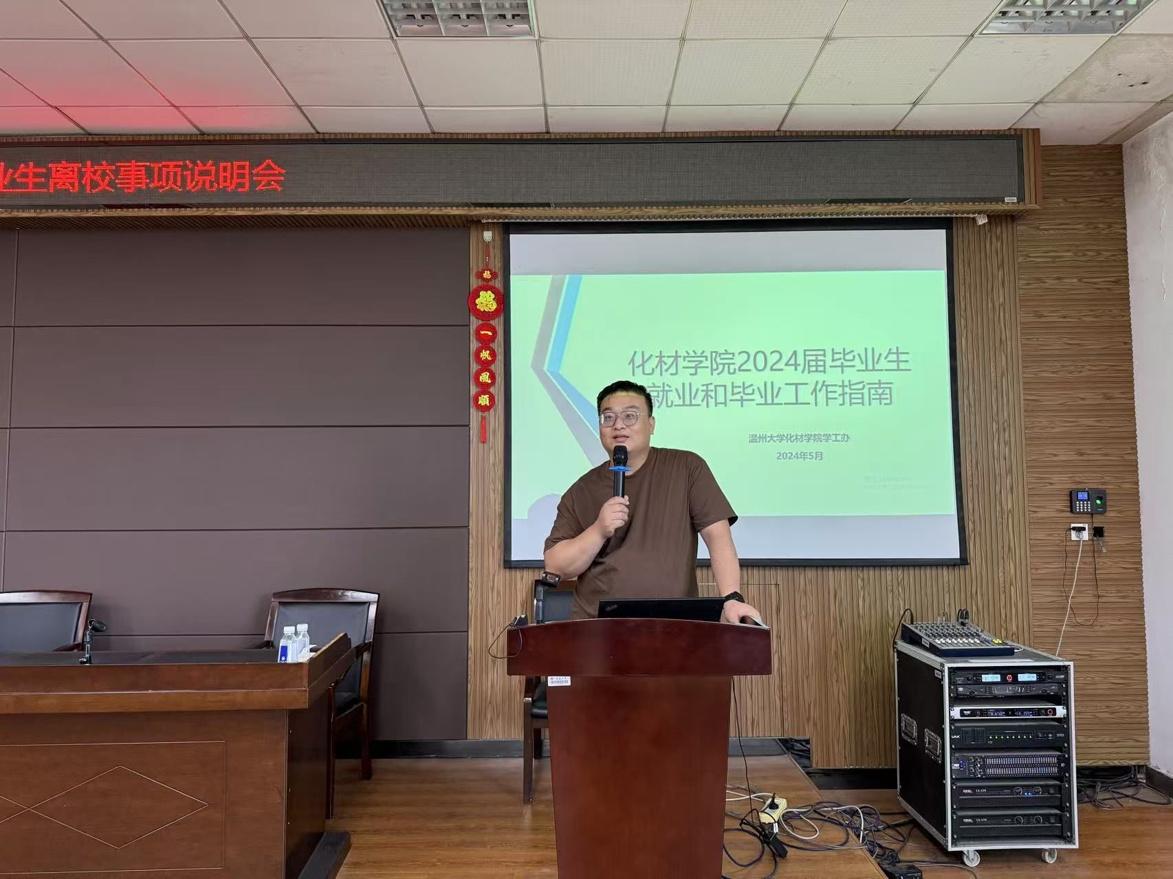 党委于2024年5月16日上午在化材楼11C401召开2024届毕业生远航教育大会暨毕业事项说明会。会议由金沙官网