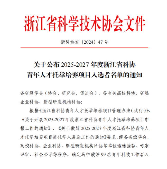 近日,2025年度浙江省科协青年人才托举培养项目入选名单公布,我校金沙官网