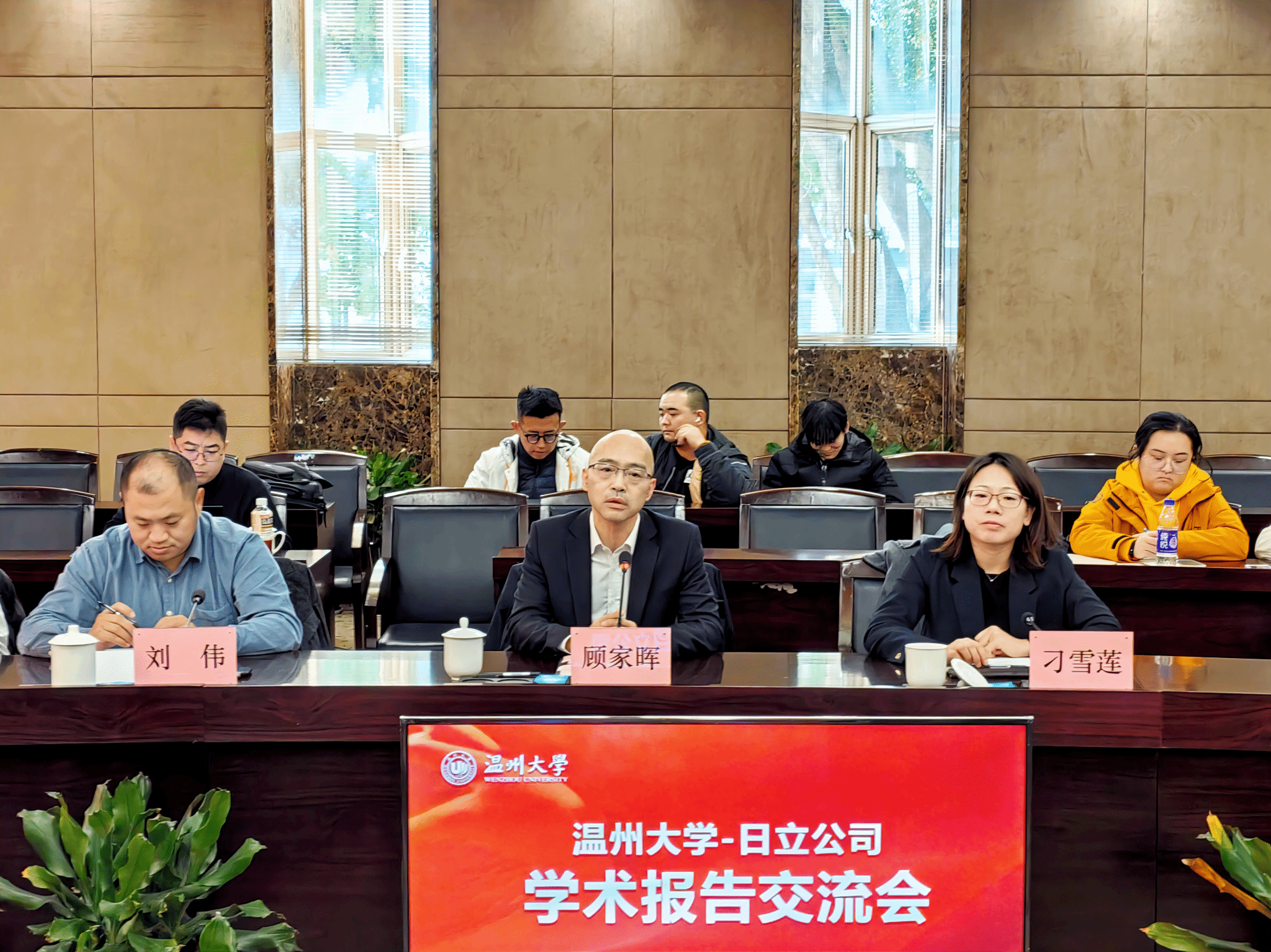 日立公司总裁顾家辉致辞。他肯定了温州大学近年来在学科建设、人才培养、科学研究和社会服务等方面取得的成绩,随后他介绍了日立公司的历史和发展。他希望这次交流会能成为温大师生创造接触前沿科技、拓宽国际视野的优质平台,相信也能为日立公司的发展注入新的活力和创新源泉。