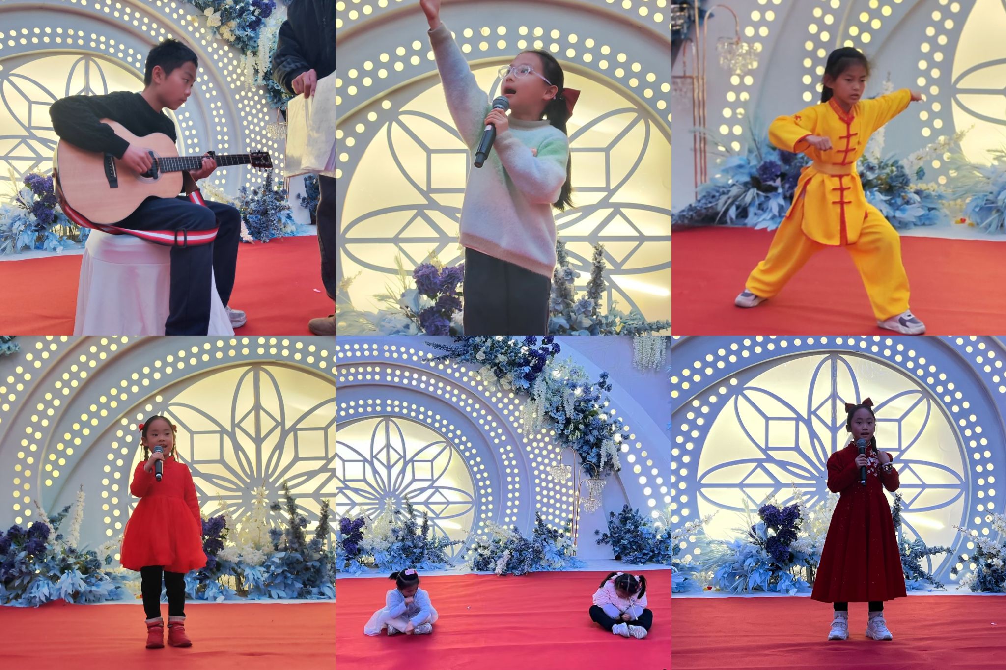 紧接着,由小朋友们组队,给大家带来了歌曲《阿刁》、吉他《流行的云》、舞蹈《小喵咪》、朗诵《读中国》、武术《十二生肖拳》等。