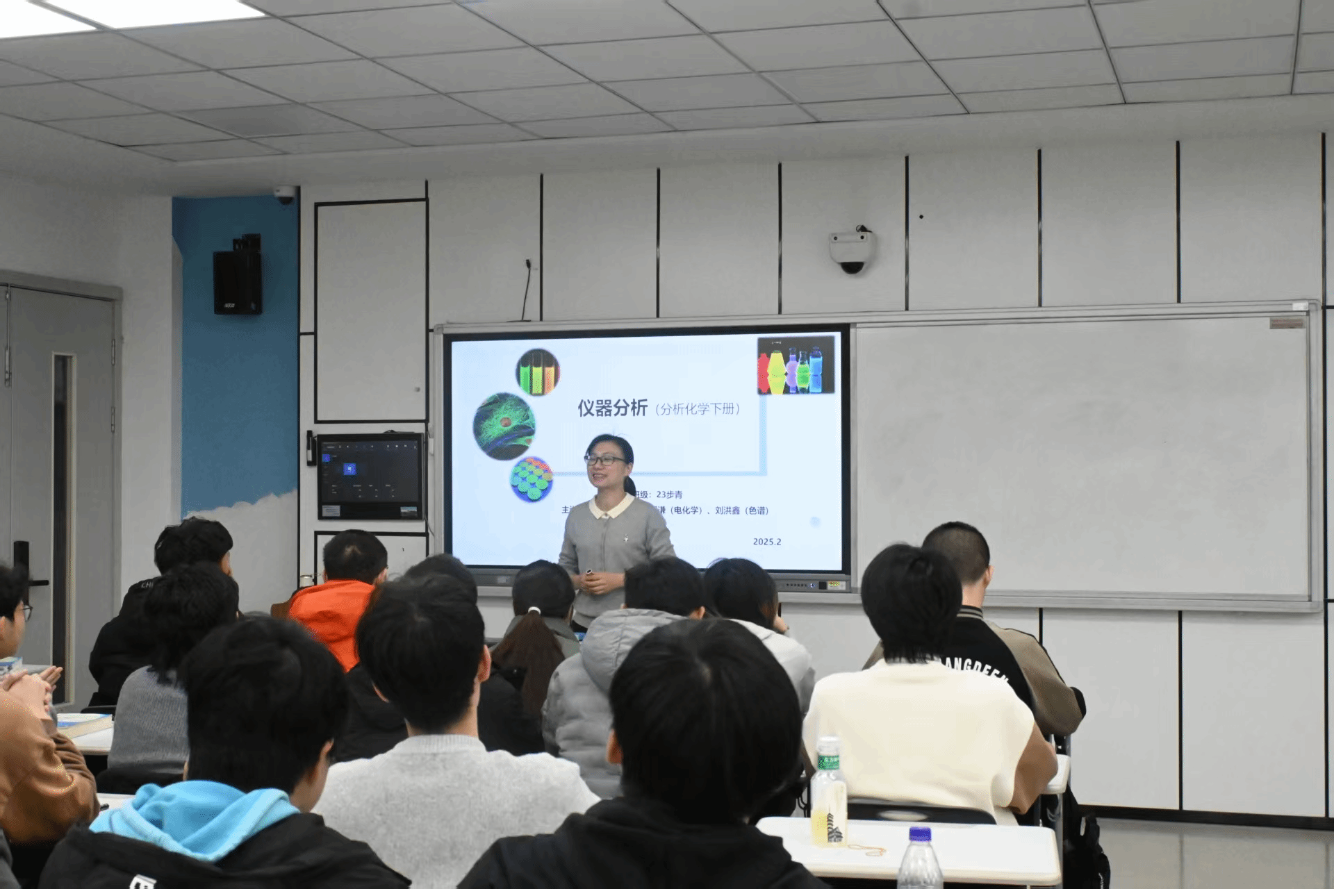 课堂上,刘老师以清晰的教学思路和深入浅出的讲解,将仪器分析的基本理论和技能传授给学生。在讲解原子跃迁、光谱带状分布等抽象概念时,她巧妙融入实际案例,帮助学生加深理解,展现出扎实的教学功底和丰富的教学经验。
