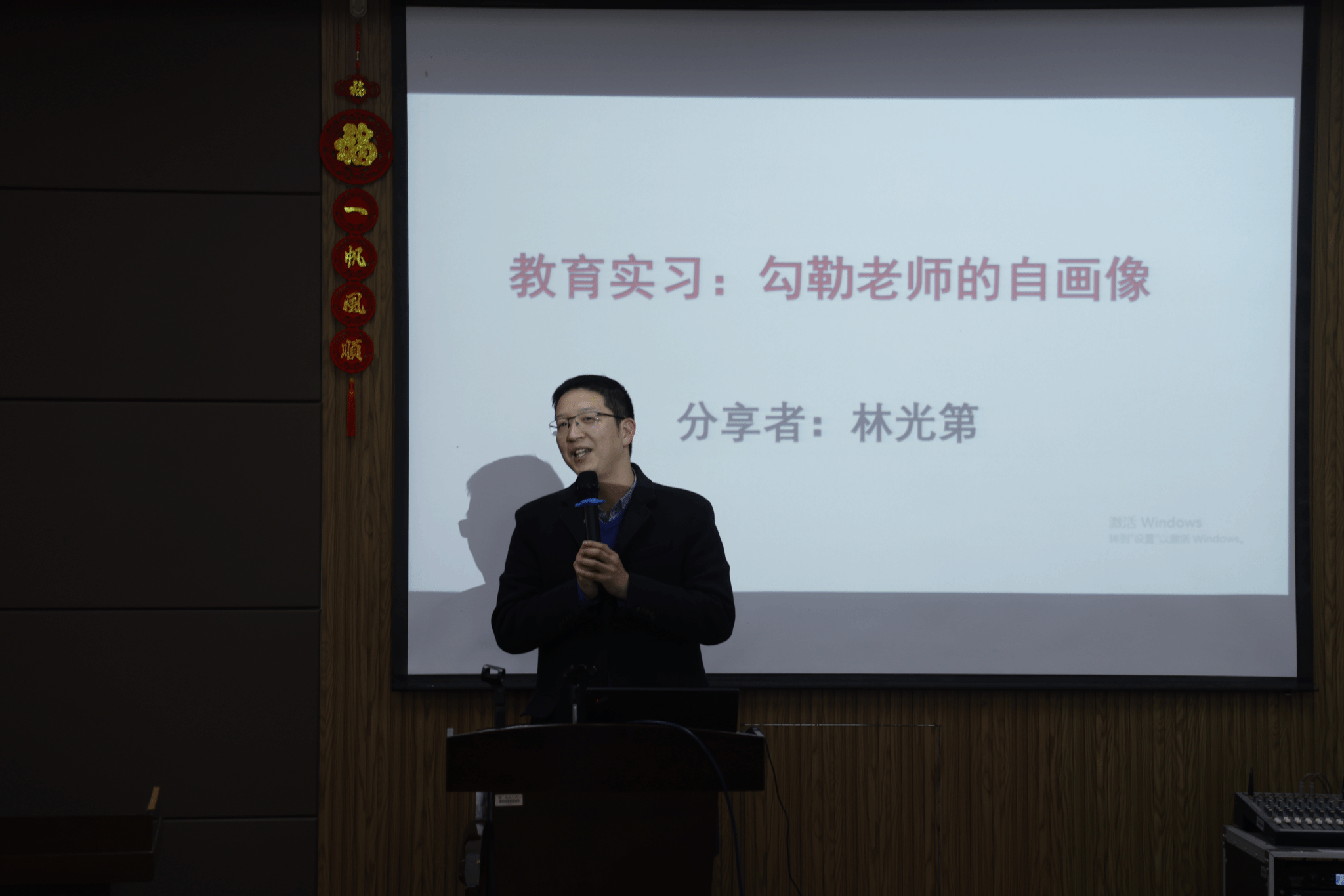 学会理事林光第老师以“教师的自画像”为题展开了初中科学实习讲座。重点讲述了教学设计和班主任工作,指出:教学设计要明确课程标准指导、目标导向、学生需求。并结合本次初中实习的内容,对如何备好这些程展开了探讨。林老师希望同学们在教学实习期间,能做到教学目标明确,教学活动有序;实习班主任时,要注意以下几点:一要尊重原班主任,虚心向班主任学习,维护原班主任威信;二是要公正、客观,对待学生要一视同仁。