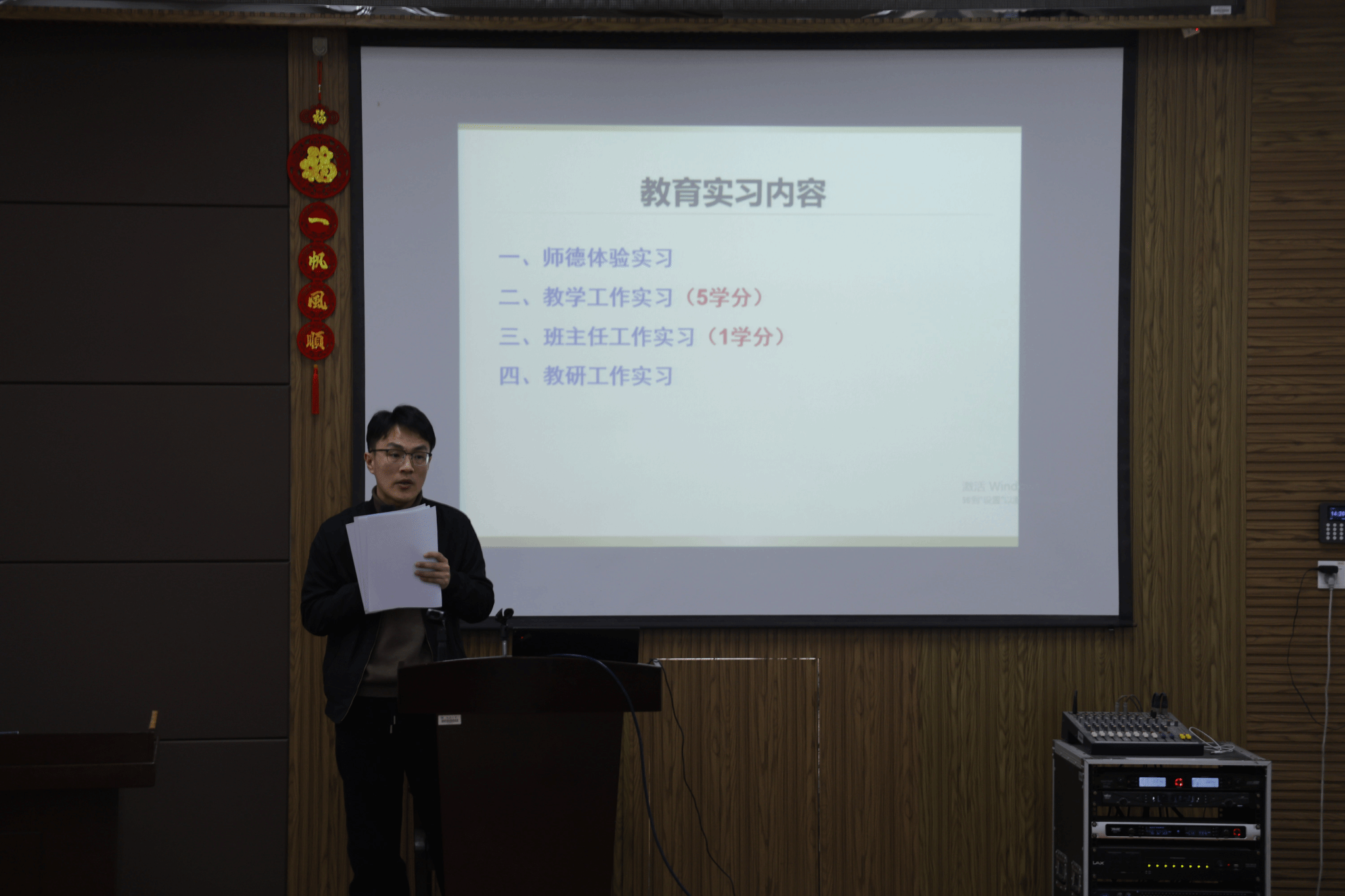 叶剑强老师围绕组织安排、重点任务等对本次教育实习工作作出具体部署,系统介绍了师德体验、教学实践、班级管理和教育研等实习内容,强调实习过程需做好教学日志、听课记录等材料的实时记录,并在实习结束后一周内完成平台上传工作。