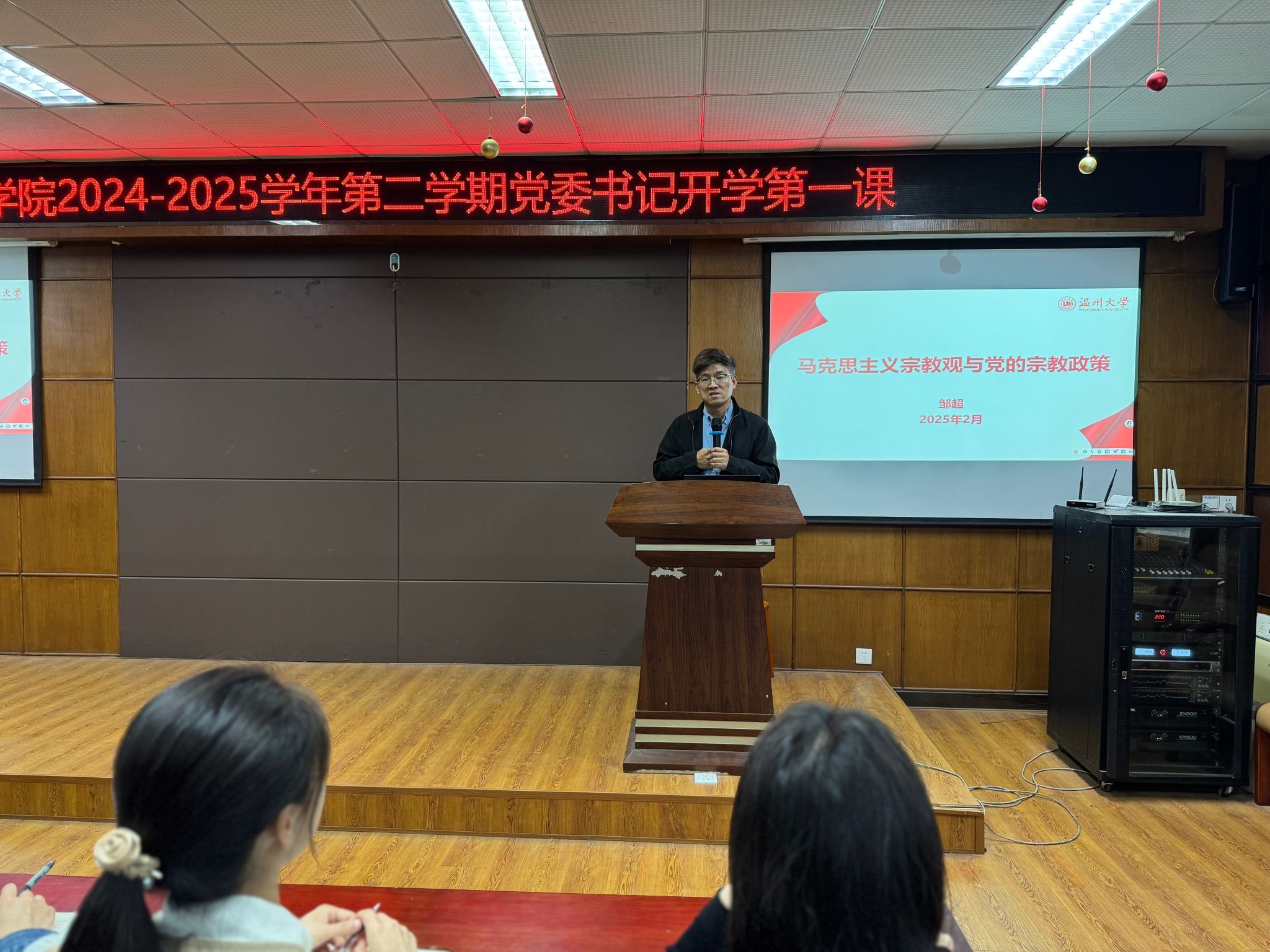 党委书记邹超以“马克思主义宗教观”为主题,为全体学生讲授“党委书记第一课”,全体本研学生线上线下参与。