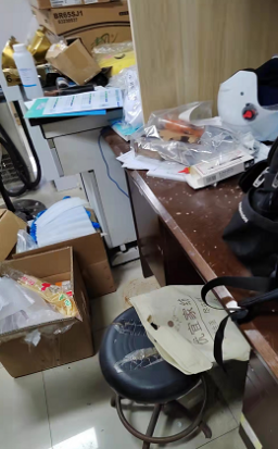 11B102实验室杂物(纸箱、破损椅子) 11B302废液没有及时清运