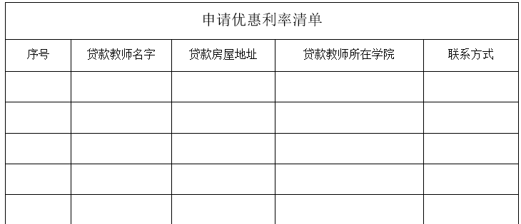 、贷款房屋地址、联系方式等信息报到计财处叶俐玲(行政楼312A)处,学校将不定期向银行提出申请,给予我校老师优惠贷款利率。