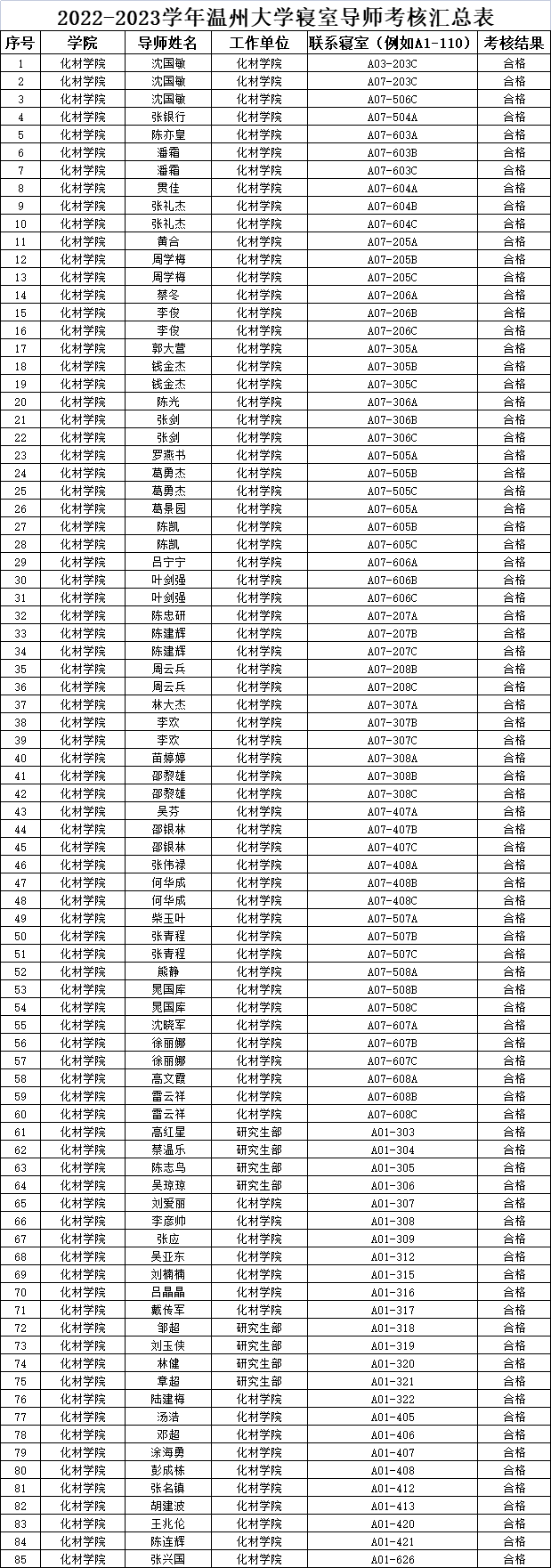 根据《温州大学寝室导师制实施办法》,已对2022-2023学年寝室导师完成考核,先将考核结果公布如下: