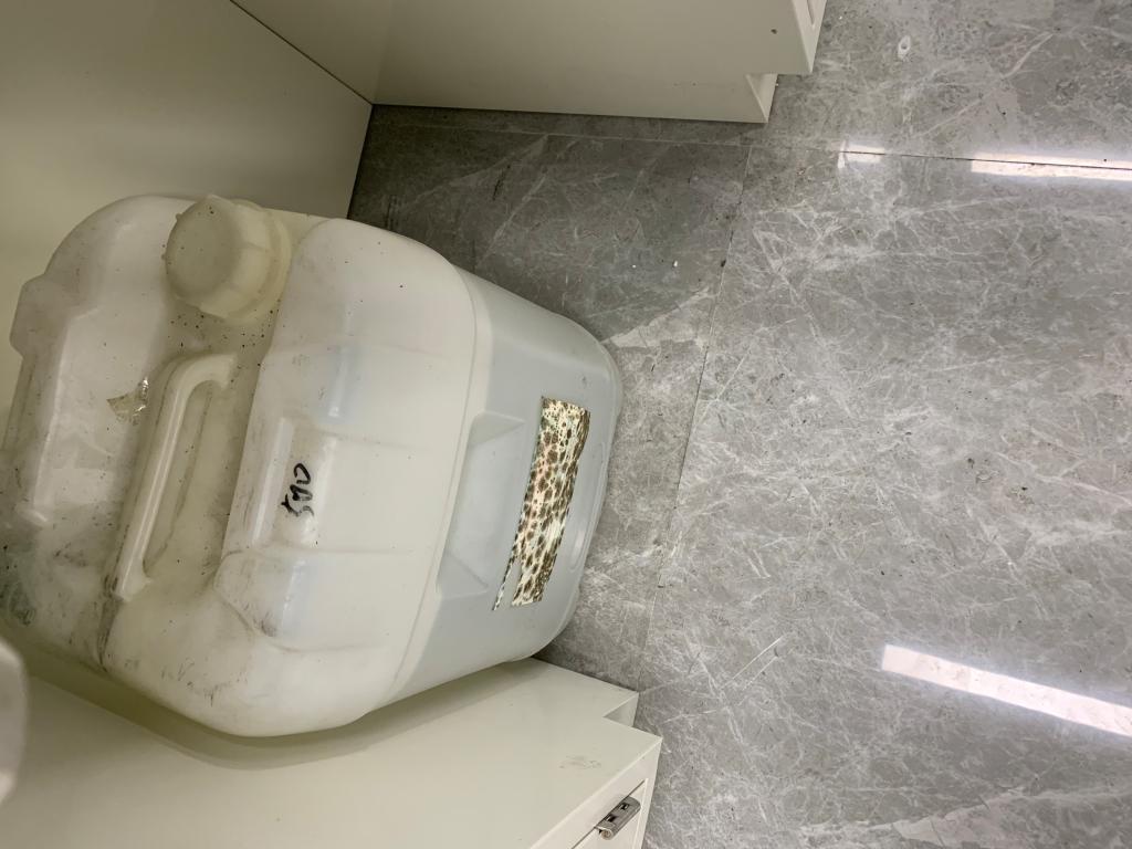 废液桶未贴正确标识;试剂桶未贴标签 |