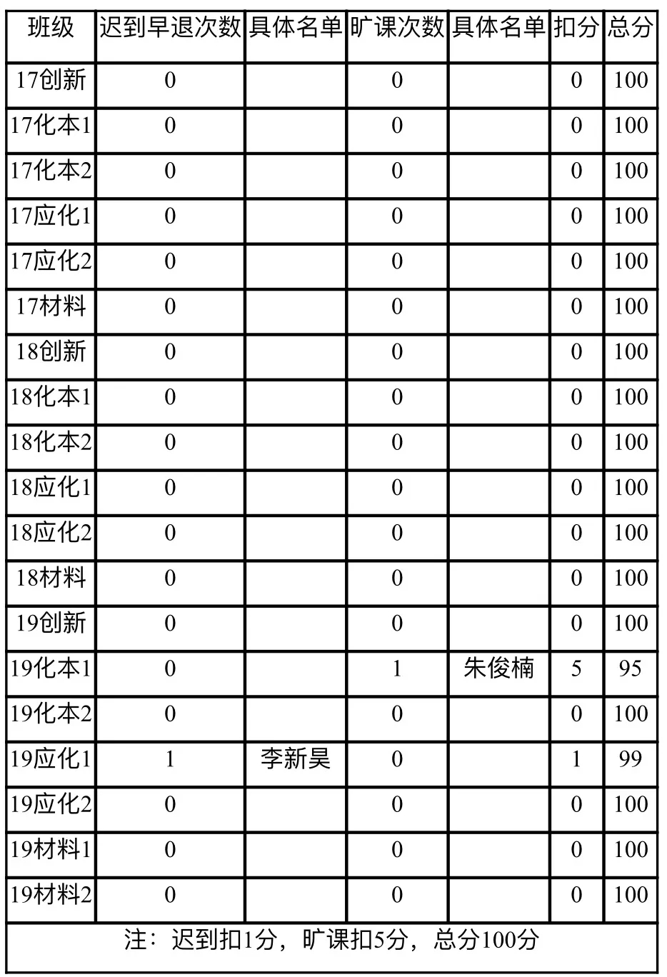 的学风建设、督促学生按时参与线上课程,现对2019-2020学年第二学期第十四周考勤情况进行通报。每天由各班负责人统计各科出勤情况并上报,最终一周的考勤情况于每周五进行汇总公布。
