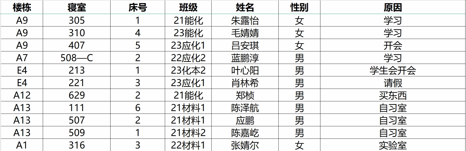 (2)若有学生在其他宿舍舍友可告知其返回核实;