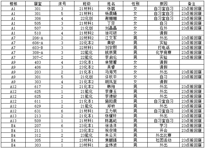 (2)若有学生在其他宿舍舍友可告知其返回核实;