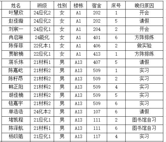 将进一步加大“夜不归宿”检查力度,违反者将按学校相关规定严肃处理。