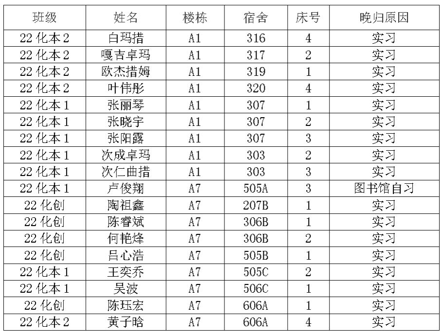 (2)若有学生在其他宿舍舍友可告知其返回核实;