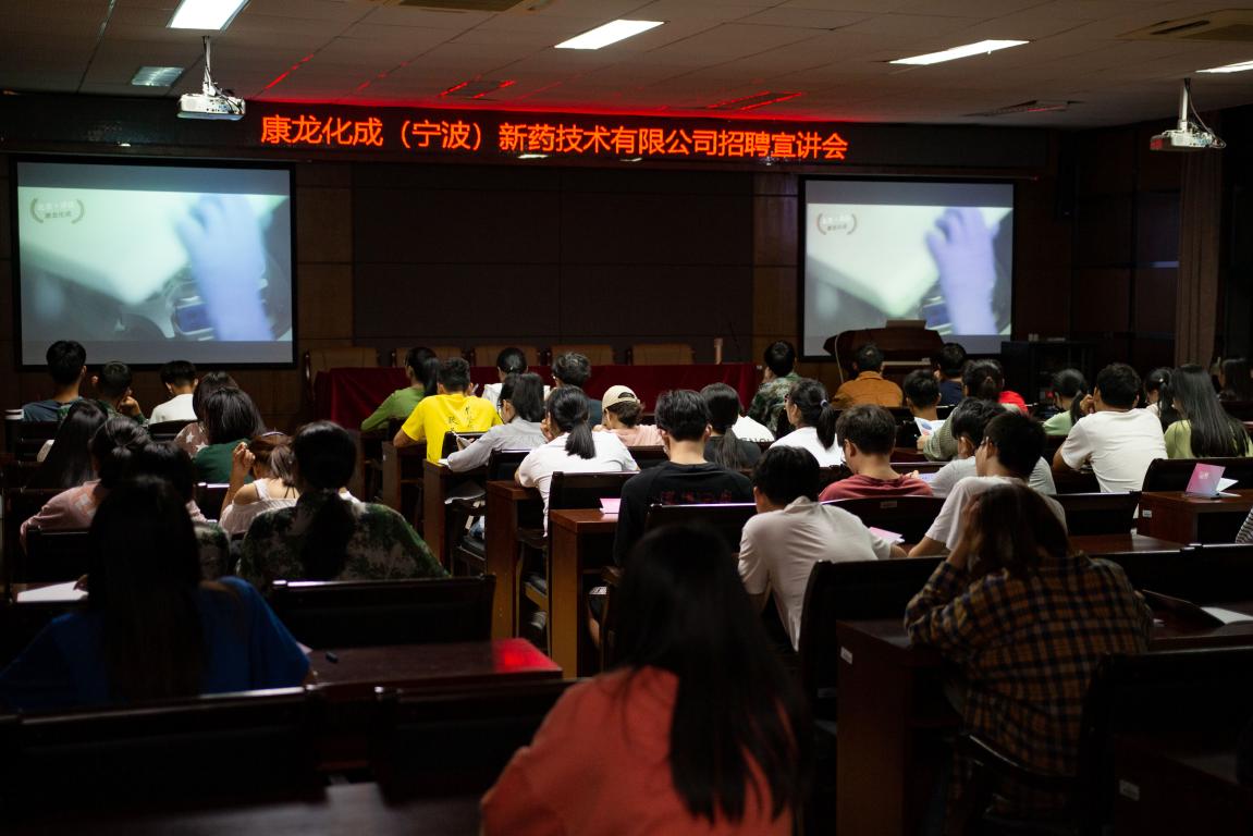 本次宣讲会让参加者充分了解该公司各种招聘需求、政策、福利。首先,通过一段视频让在场的化材学子了解到康龙化成新药技术公司的雄厚实力,该公司不仅是国际领先的生命科学研发服务企业,还是中国CRO行业北方地区规模最大的药物研发服务机构。其次,作为一个可以给员工较大提升空间的用人单位,康龙化成提供博士班和硕士班的培训组织,并有各种福利活动、提供各种业余生活活动。然后,主持人介绍了公司的招聘信息,招聘要求,招聘方式以及招聘进度,提醒在场各位同学招聘的注意事项。最后,进行了互动交流环节,让同学们对公司生活、培训发展方向等发当面有了更深入的了解。