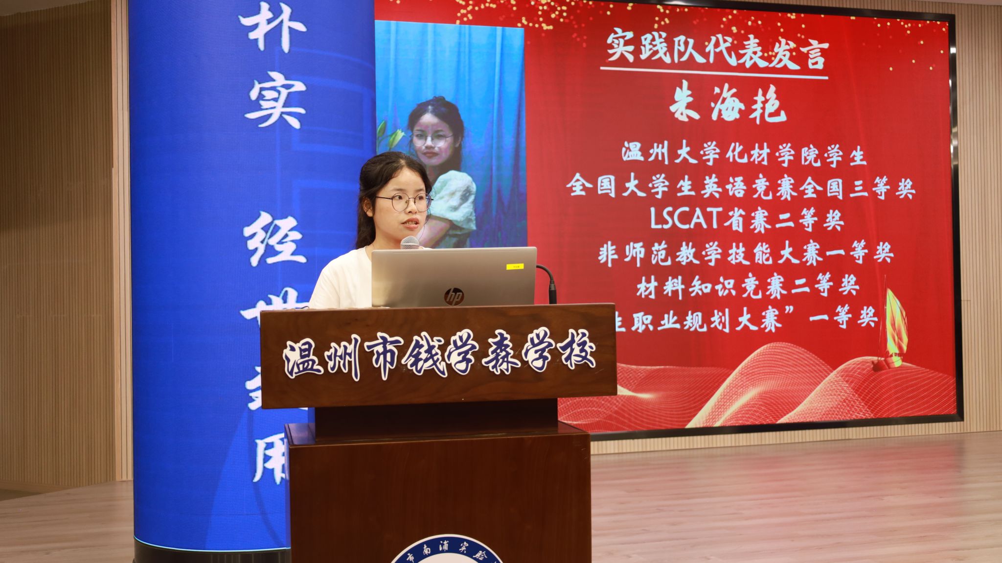 温州大学He-406暑期社会实践队队员代表朱海艳向在场营员介绍了实践队的活动特色、师资队伍、课题方向、实验安排等,让营员对实践队有了更加全面和深入的认识。