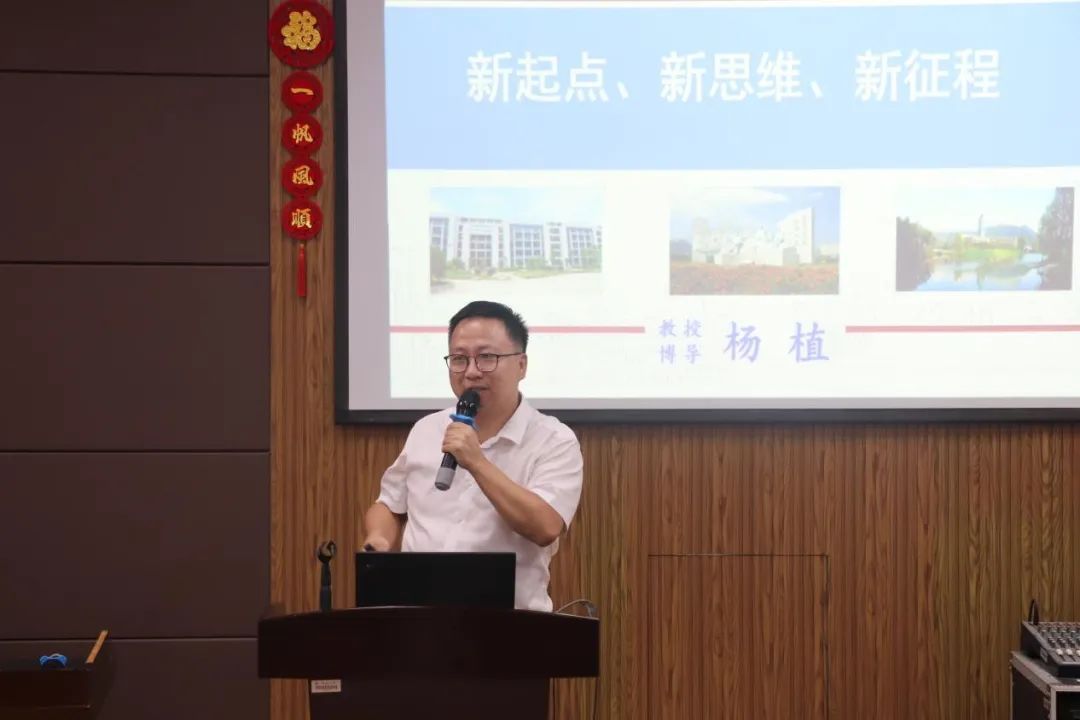 杨植院长为全体研究生新生上院长第一课,他先向265名新生送上最衷心的欢迎和最热烈的祝贺,并为新生导学畅游精妙化学、生动材料世界,引领开启学习研究新篇。他以“新起点、新思维、新征程”为题,生动介绍了温州精神、金沙官网