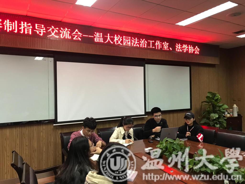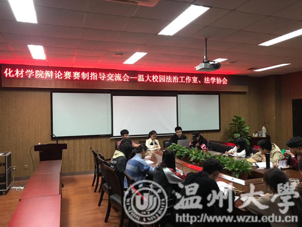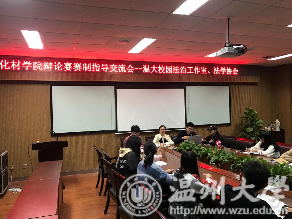 辩论赛赛制指导交流,邀请了温州大学校园法治工作室负责人易招娣老师、法学协会负责人徐涛、张钰松前来进行指导。参与此次交流会的有金沙官网