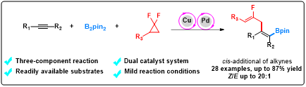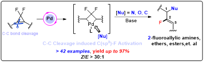 Research Focus: Develop new synthetic approach cross-coupling reactions catalysis of gem-Difluorinated Cyclopropanes toward synthesis C–C bond-formation {C(sp3)–C(sp)/C–(sp2)/C(sp3)} as well as regio- and enantioselective studies.