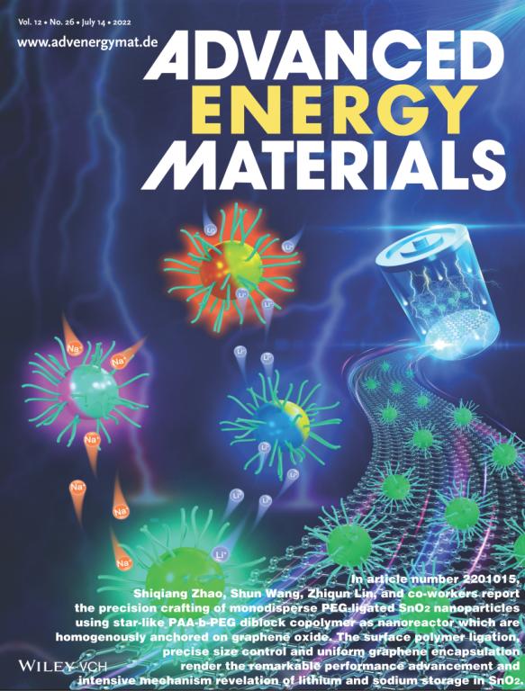 近日,《Advanced Energy Materials》(影响因子:29.698)将我校赵世强副教授第一作者的研究论文“Advancing Performance and Unfolding Mechanism of Lithium and Sodium Storage in SnO2 via Precision Synthesis of Monodisperse PEG-Ligated Nanoparticles”选为期刊封面文章。我校王舜副校长与佐治亚理工金沙官网