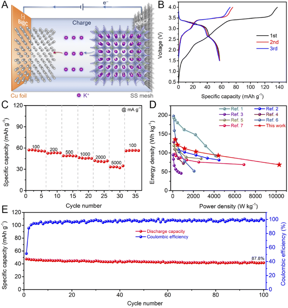 图 1. KNiHCF//Bi@C全电池的电化学性能测试