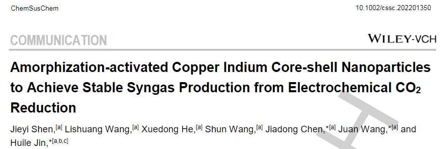 相关论文以“Amorphization-activated Copper Indium Core-shell Nanoparticles to Achieve Stable Syngas Production from Electrochemical CO2 Reduction”为题发表在ChensusChem上(JCR 1区,Top,IF=9.14)。温州大学为第一通讯单位,金沙官网