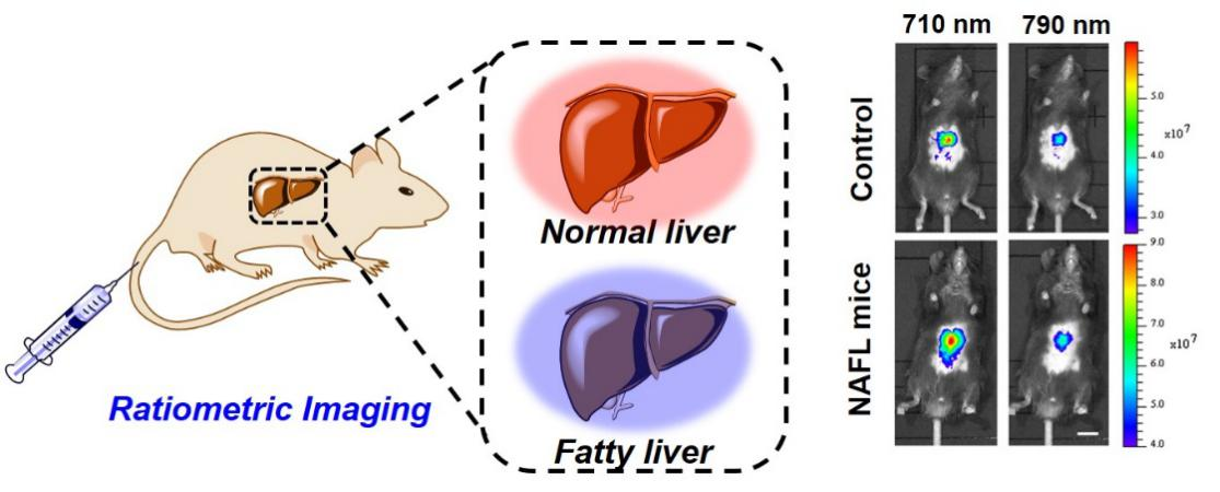 非酒精性脂肪肝(NAFL)是临床上常见的慢性肝脏疾病,研究表明目前我国NAFL患者人数预计已达3亿,且呈快速增长趋势。超声成像是目前临床上最常用的NAFL检测手段,然而其检测灵敏度较低且检测结果受腹腔内气体干扰。荧光成像具有高灵敏度、高分辨率、快速无损等特点,有望为脂肪肝疾病的精准诊断提供临床医学影像支撑。