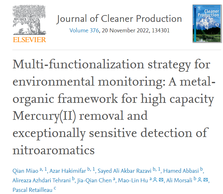 相关科研成果发表于近期的Journal of Cleaner Production (DOI: 10.1016/j.jclepro.2022.134301),温州大学为第一通讯单位,缪谦教授为第一作者,胡茂林教授为通讯作者,相关工作受到国家自然科学基金项目(No. 21571143)的支持。