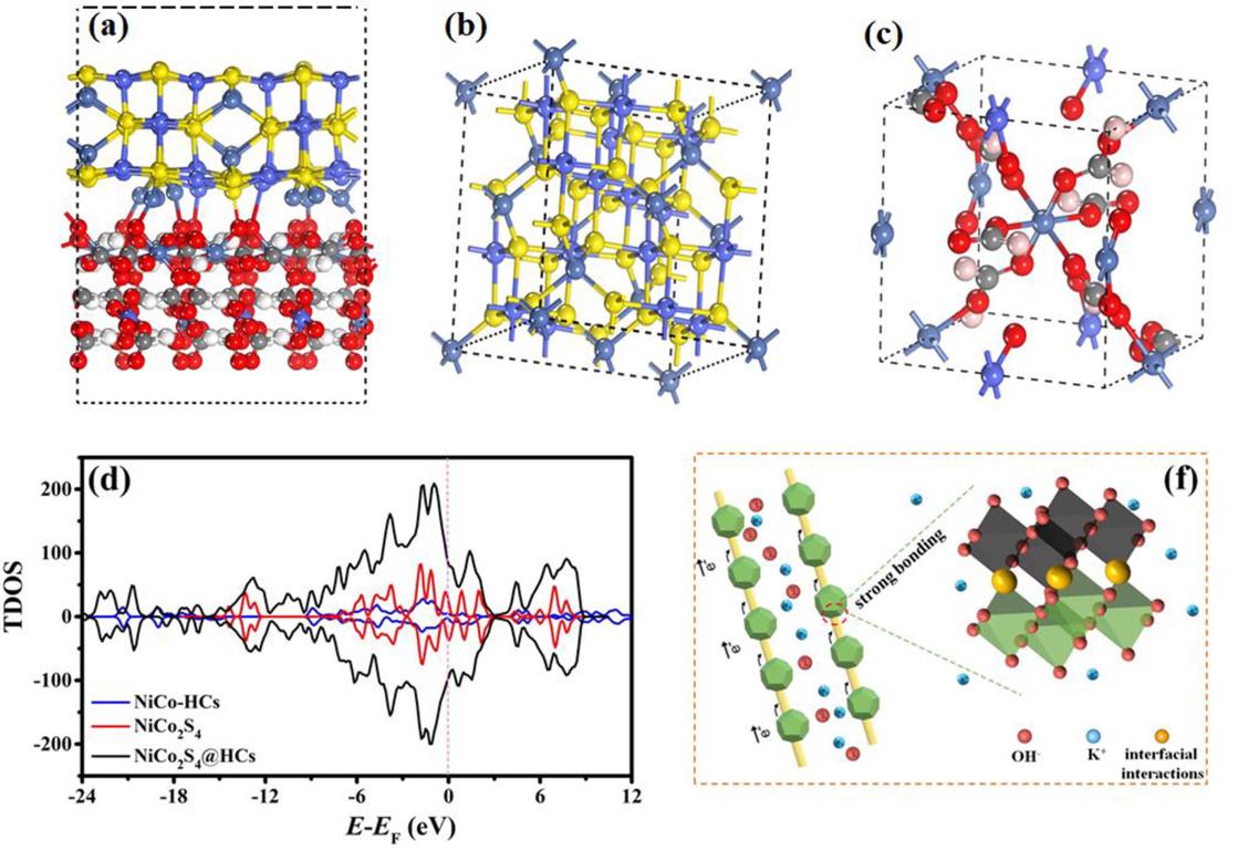 DFT计算表明,这种合理的设计使NiCo2S4与NiCo(HCO3)2之间产生了强烈的界面相互作用。 这不仅有利于电子转移和离子吸附/解吸过程,而且大大增加了电活性位点,防止了电极材料的结构退化,大大提升了材料的电化学性能。