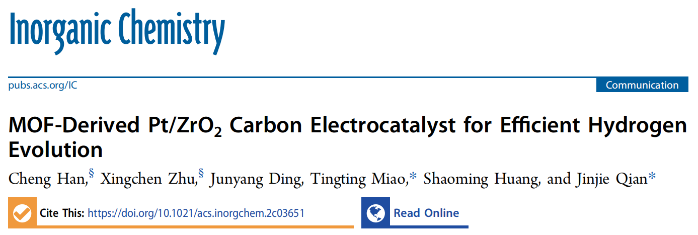 Cheng Han, et al. MOF-Derived Pt/ZrO2 carbon electrocatalyst for efficient hydrogen evolution. Inorg. Chem., 2022, 61 (46), 18350-18354.