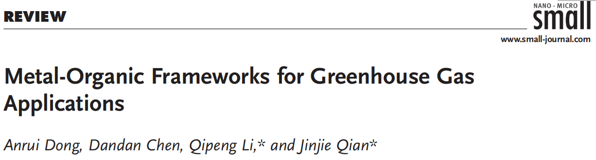 Anrui Dong, et al. Metal-Organic Frameworks for Greenhouse Gas Applications. Small, 2022, 10.1002/smll.202201550