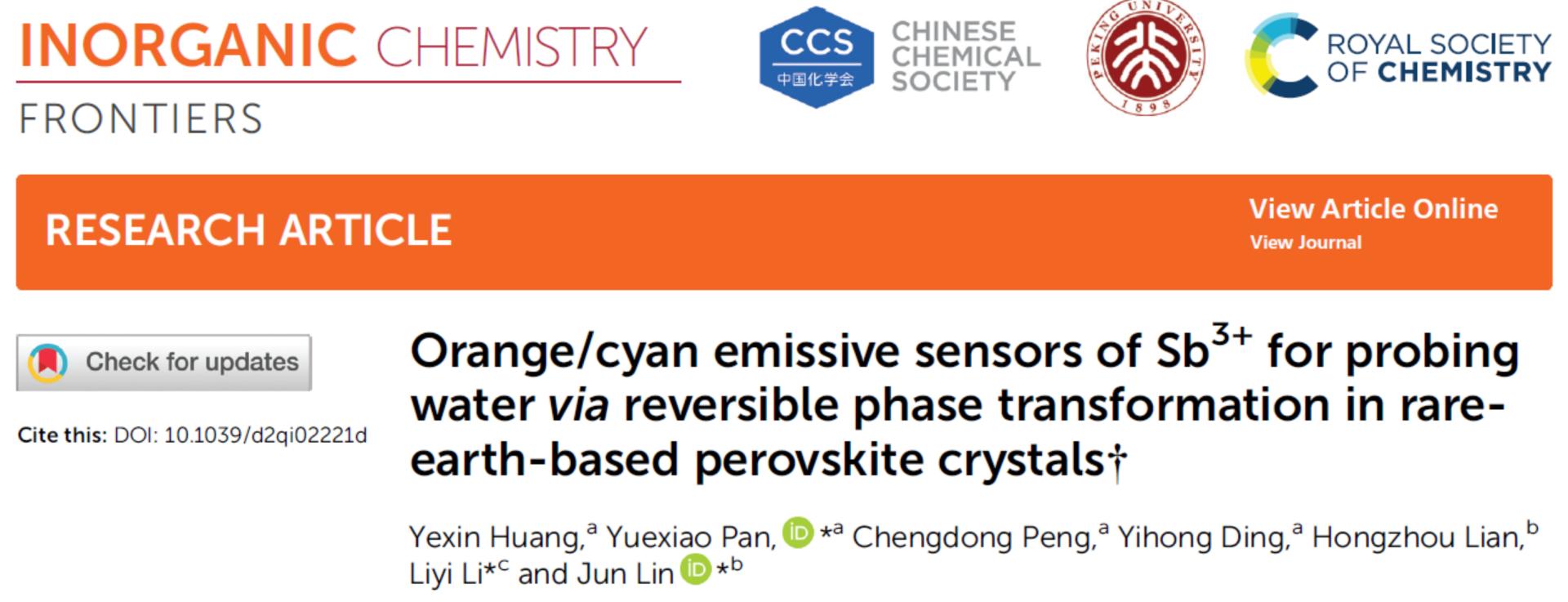 这一研究结果以“Orange/Cyan Emissive Sensors of Sb3+ for Probing Water via Reversible Phase Transformation in Rare-Earth-Based Perovskite Crystals”为题发表在《Inorganic Chemistry Frontiers》。温州大学为第一通讯单位,金沙官网