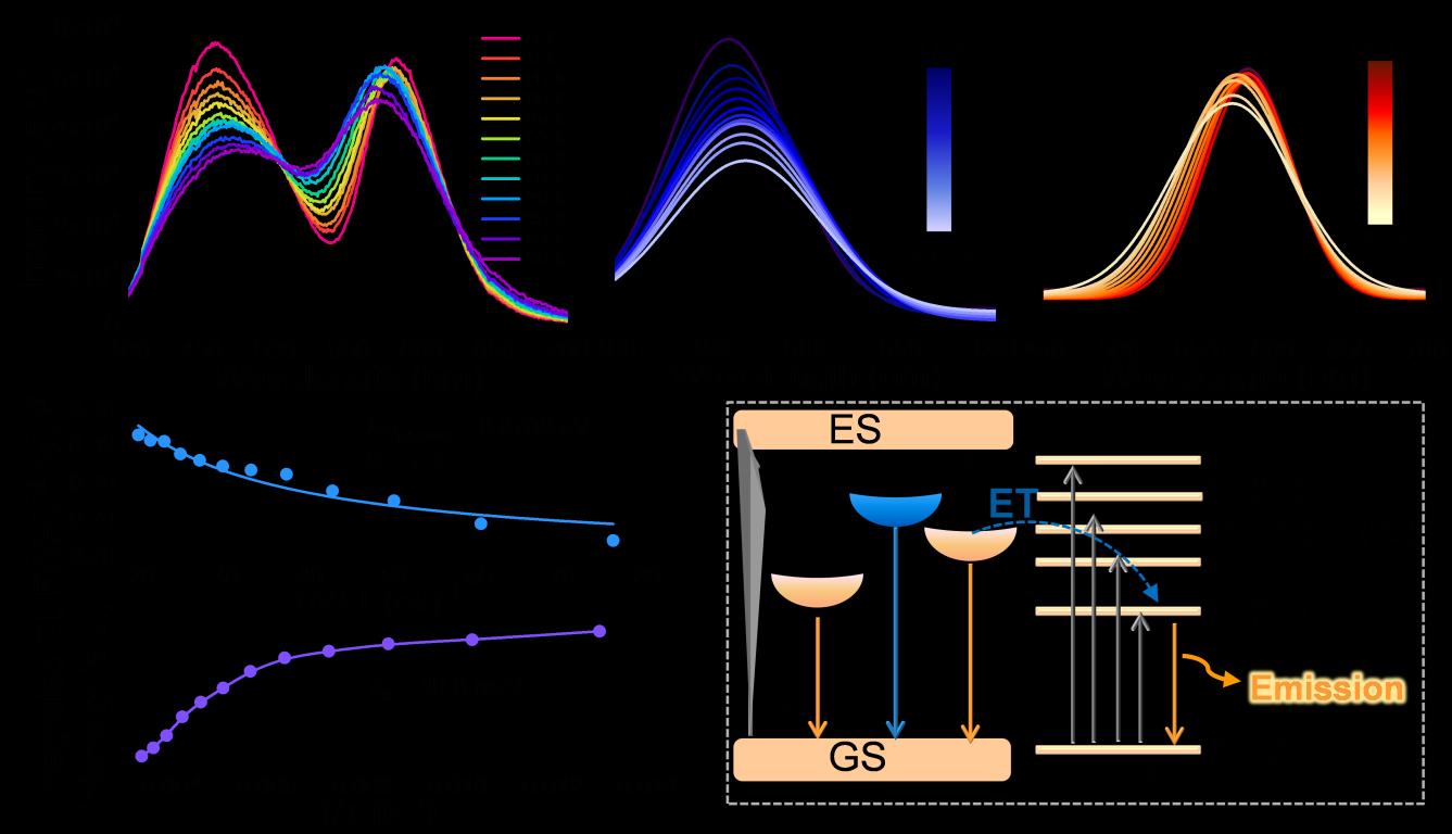目前,白光LED技术主要依靠单一芯片激发多种混合荧光粉的方式产生白光。然而,由于混合荧光粉各组分物理和光学特性不同,混合过程相对复杂,而且不同的荧光粉在工作电流下的衰减速率不同,导致白光色域随着老化时间的推移而产生偏差,因此,开发高效单组分白光材料显得尤为重要。研究发现,由于一些低维有机-无机杂化金属卤化物和全无机钙钛矿晶体因自身结构的限域以及强烈的电子-声子耦合效应,具有独特的自陷激子(STE)特性,呈现出较大的斯托克斯位移和较宽的发射带。在单组分晶体中,引入掺杂离子,产生多个发射中心,是实现覆盖整个可见光区域的白光的可行策略。然而,如何实现单组分多发射中心光谱的调谐,及优化单组分白光材料的发光效率,仍是亟待探索。此外,目前对具有ns2电子组态的掺杂离子的发光机理也缺乏详细的理论阐述。