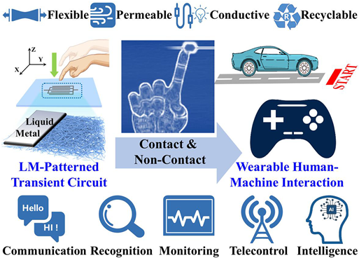 柔性、透气和可回收的聚合物/液态金属基(非)接触双模式瞬态电路用于可穿戴人机交互