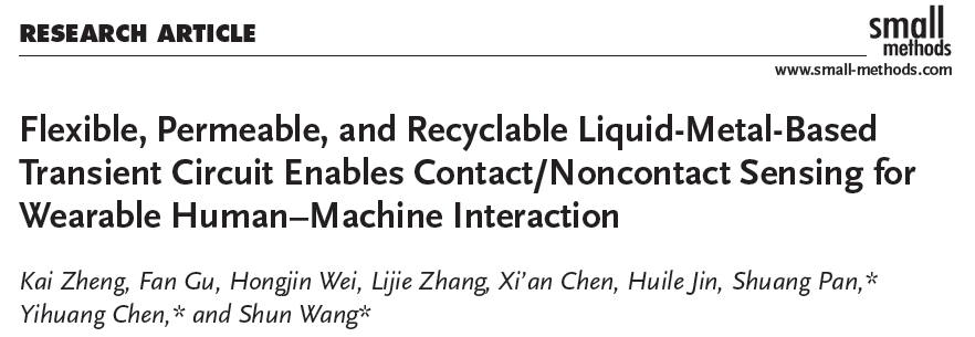 相关研究以“Flexible, permeable and recyclable liquid-metal-based transient circuit enables contact/non-contact sensing for wearable human-machine interaction”为题发表在国际期刊《Small Methods》(IF=15.367)上,温州大学作为唯一通讯单位,金沙官网