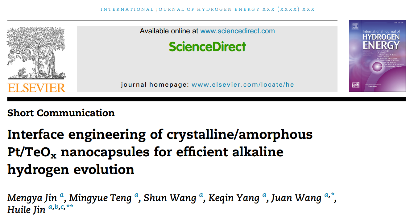 相关研究以“Interface engineering of crystalline/amorphous Pt/TeOx nanocapsules for efficient alkaline hydrogen evolution”为题发表在国际期刊《International Journal of Hydrogen Energy》(JCR-2区, IF=7.139)上,温州大学作为唯一通讯单位,金沙官网