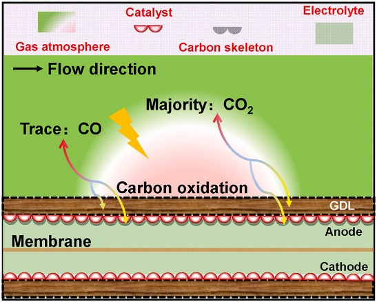 近年来,碳基气体扩散层(GDL)作为催化剂的涂覆层,具有优异的导电性和导气性,在流动电解池中用于构建气-液-固界面反应场所,可以有效提高电化学反应的效率。然而,一旦施加电位,GDL在阳极不可避免地发生碳腐蚀即碳氧化反应(COR),生成CO2和CO,导致GDL物理结构的破坏并出现水淹现象,降低电解性能,最终导致电化学反应终止。因此,准确认识和分析腐蚀机理,制定有效的控制策略是十分必要的。研究人员开发各种缓解碳腐蚀的方法,例如在阳极上使用高效析氧反应(OER)催化剂来促进水电解和增加碳材料的结晶度。然而,这些研究大都是在低电流密度的H型电解池中进行,主要是定性研究,这些研究结果对于抑制流动电解池的碳腐蚀现象并不匹配。因此,定性、定量地研究流动电解池中阳极GDL碳腐蚀现象并制定有效的抑制COR策略,具有重要的科学和现实意义,促进流动电解池的大规模商业化发展。