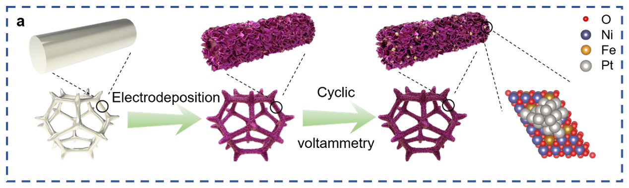 氢能源因其能量密集和碳中性被认为是取代传统化石燃料最有前途的能源载体之一。然而,裂解或重整化石燃料仍然是工业制氢的主要途径。电解水被认为是生产氢气的高效和清洁手段,其中碱性电解在成本、稳定性和工业化方面显示出关键优势。碱性电解水的效率仍然受到析氢反应(HER)和析氧反应(OER)的迟缓动力学的限制,这一点在在大电流密度下尤甚。目前,贵金属材料仍然是最先进的水电解催化剂。然而,成本高和稳定性差限制了它们的大规模应用。