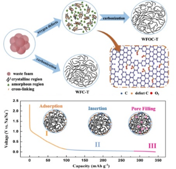 大储量、高容量、低成本是无序碳材料作为钠离子电池优秀负极材料的核心竞争力。而大量有机固体废物的存在和处理不当会加重环境负担,因此,将其转化为碳基材料进行可持续能源利用具有重要意义。