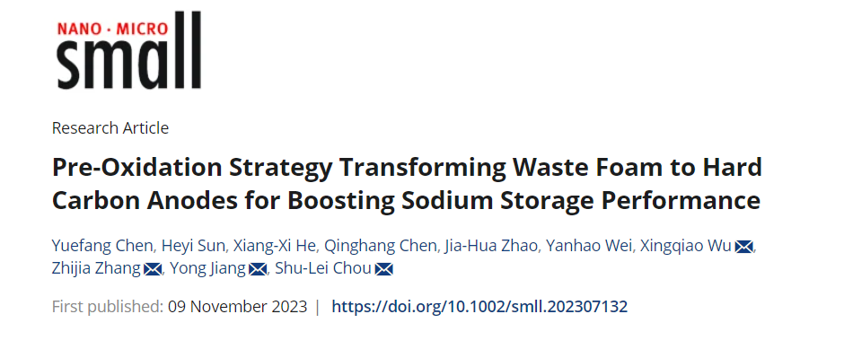 该研究以题目为“Pre-oxidation Strategy Transforming Waste Foam to Hard Carbon Anodes for Boosting Sodium Storage Performance”的论文发表在材料领域国际顶级期刊《Small》。金沙官网