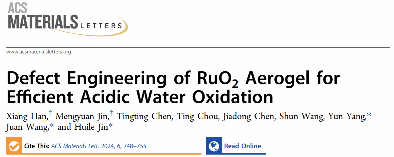 相关论文以“Defect Engineering of RuO2 Aerogel for Efficient Acidic Water Oxidation”为题发表在ACS Materials Letters上。温州大学为第一通讯单位,金沙官网