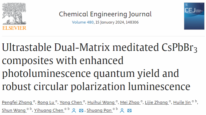 该成果以“Ultrastable Dual-Matrix meditated CsPbBr3 composites with enhanced photoluminescence quantum yield and robust circular polarization luminescence”为题发表在Chemical Engineering Journal期刊(IF=15.1,SCI一区)上。温州大学为唯一通讯单位,生环金沙官网