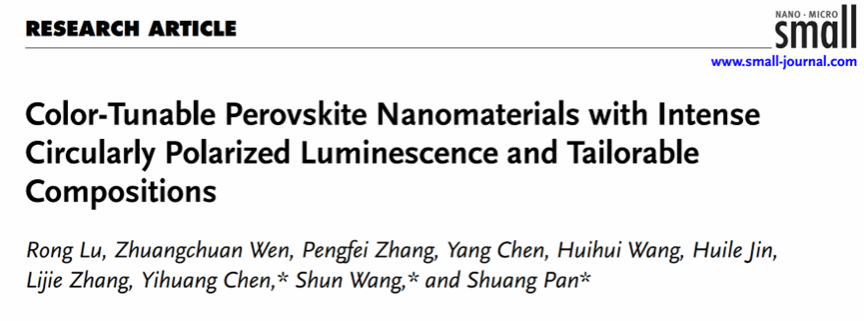 这一研究结果以“Color-Tunable Perovskite Nanomaterials with Intense Circularly Polarized Luminescence and Tailorable Compositions”为题发表在国际期刊《Small》(IF=13.3),温州大学作为唯一通讯单位,金沙官网
