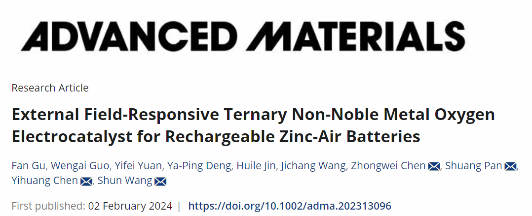 该成果以“External Field-Responsive Ternary Non-Noble Metal Oxygen Electrocatalyst for Rechargeable Zinc-Air Batteries”为题发表在Advanced Materials期刊(IF=29.4,SCI一区)上。温州大学为第一通讯单位,金沙官网