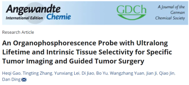 该工作以“An Organophosphorescence Probe with Ultralong Lifetime and Intrinsic Tissue Selectivity for Specific Tumor Imaging and Guided Tumor Surgery”为题发表在国际顶级期刊《Angew. Chem. Int. Ed》上。温州大学为共同通讯单位,温州大学金沙官网